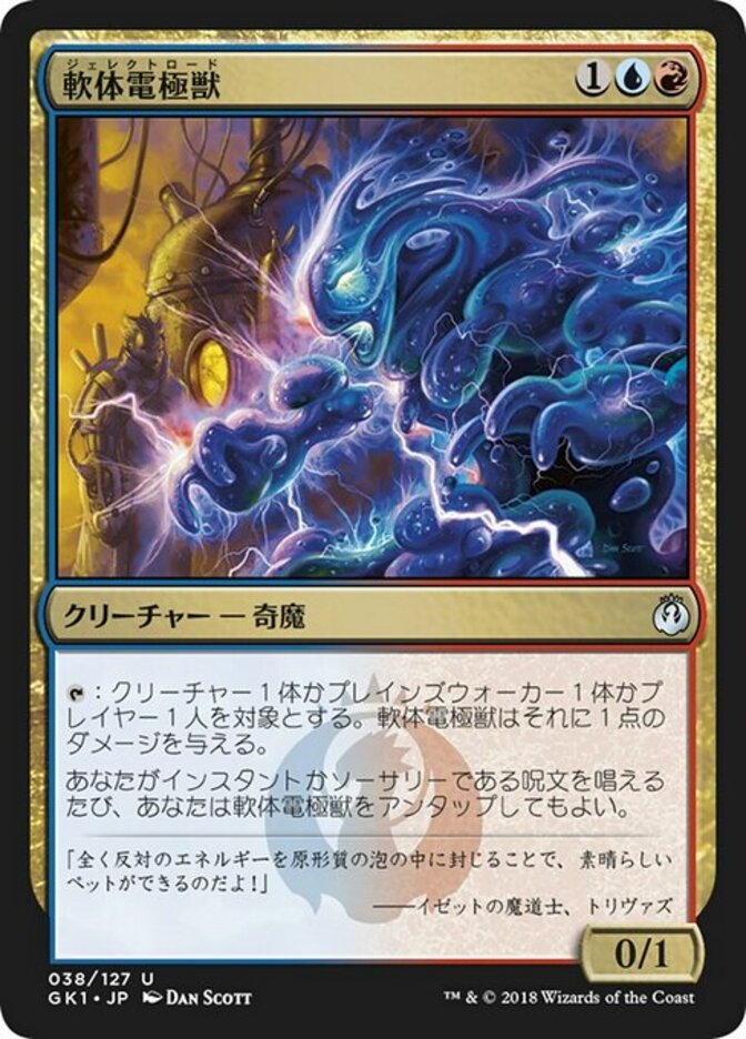 | Rules | : Gelectrode deals 1 damage to any target. Whenever you cast an instant or sorcery spell, you may untap Gelectrode. |