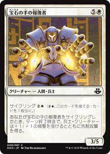 | Rules | Cycling (, Discard this card: Draw a card.) When you cycle Gempalm Avenger, Soldier creatures get +1/+1 and gain first strike until end of turn. |