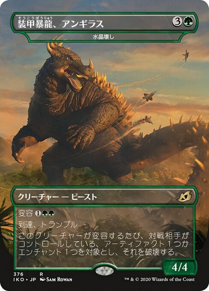 | Rules | Mutate (If you cast this spell for its mutate cost, put it over or under target non-Human creature you own. They mutate into the creature on top plus all abilities from under it.) Reach, trample Whenever this creature mutates, destroy target artifact or enchantment an opponent controls. |
