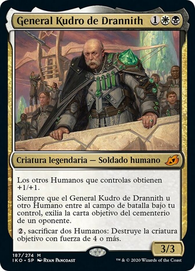| Rules | Other Humans you control get +1/+1. Whenever General Kudro of Drannith or another Human enters the battlefield under your control, exile target card from an opponent's graveyard. , Sacrifice two Humans: Destroy target creature with power 4 or greater. |