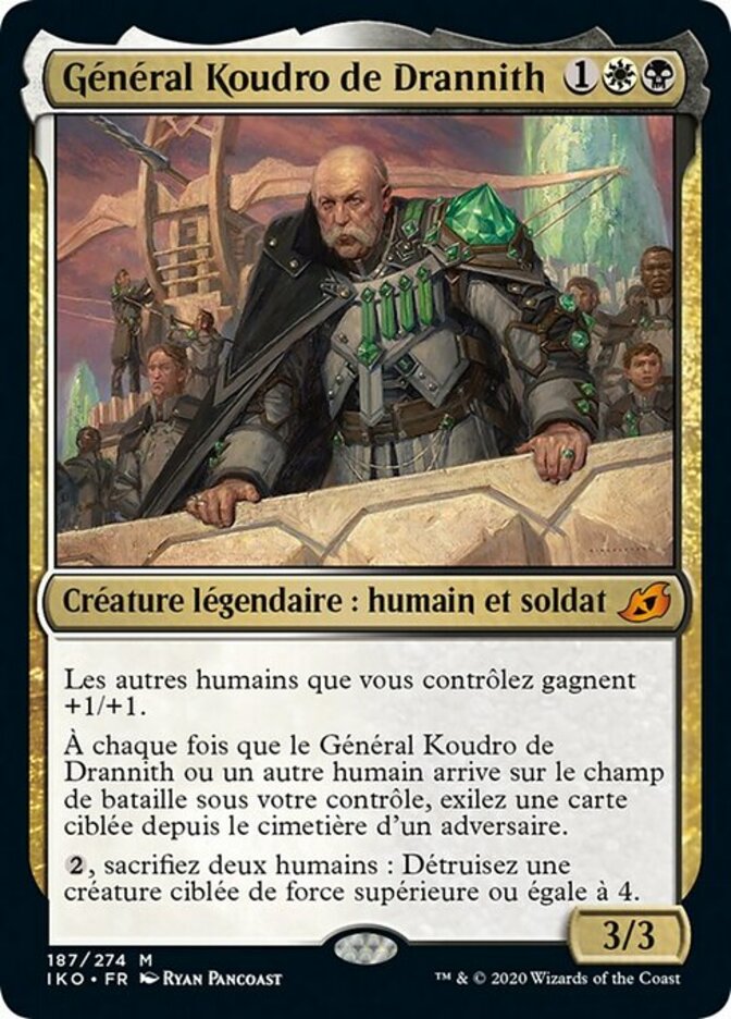 | Rules | Other Humans you control get +1/+1. Whenever General Kudro of Drannith or another Human enters the battlefield under your control, exile target card from an opponent's graveyard. , Sacrifice two Humans: Destroy target creature with power 4 or greater. |
