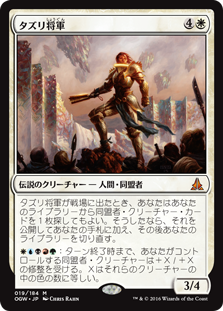 | Rules | When General Tazri enters the battlefield, you may search your library for an Ally creature card, reveal it, put it into your hand, then shuffle. : Ally creatures you control get +X/+X until end of turn, where X is the number of colors among those creatures. |
