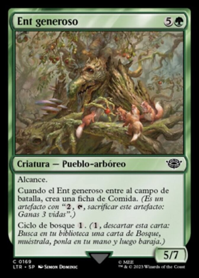 | Rules | Reach When Generous Ent enters the battlefield, create a Food token. (It's an artifact with ", , Sacrifice this artifact: You gain 3 life.") Forestcycling (, Discard this card: Search your library for a Forest card, reveal it, put it into your hand, then shuffle.) |
