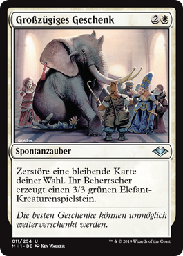 | Rules | Destroy target permanent. Its controller creates a 3/3 green Elephant creature token. |