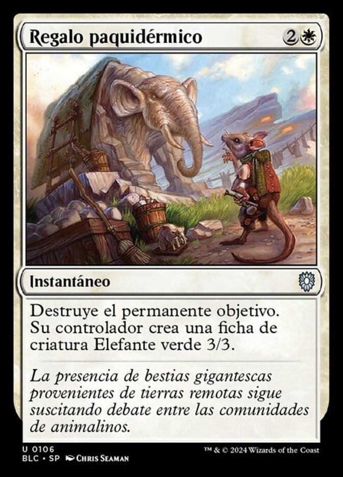 | Rules | Destroy target permanent. Its controller creates a 3/3 green Elephant creature token. |
