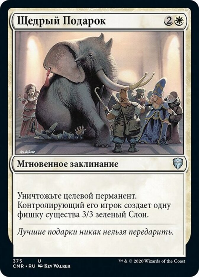 | Rules | Destroy target permanent. Its controller creates a 3/3 green Elephant creature token. |