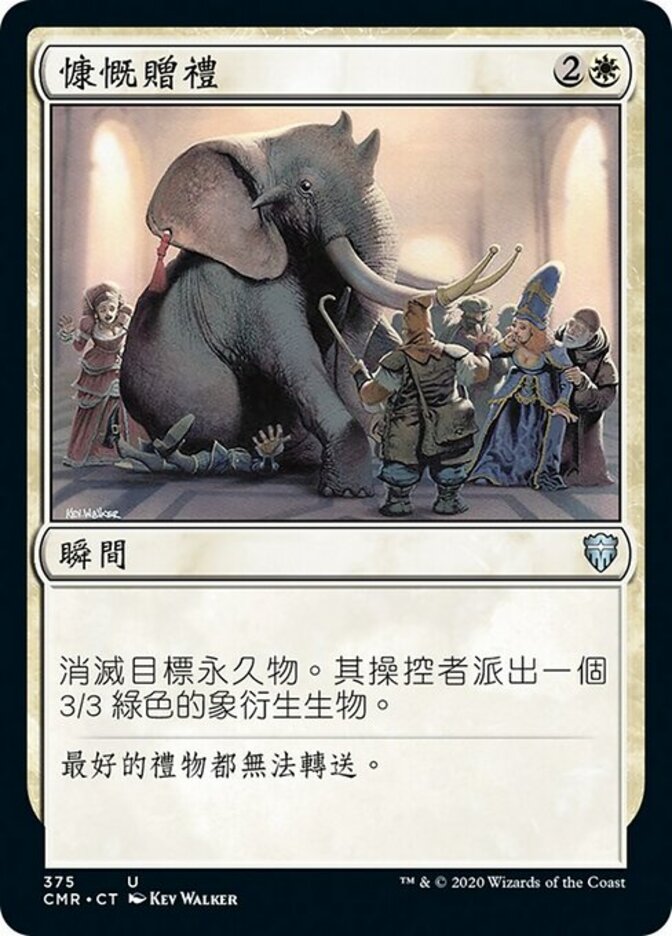 | Rules | Destroy target permanent. Its controller creates a 3/3 green Elephant creature token. |