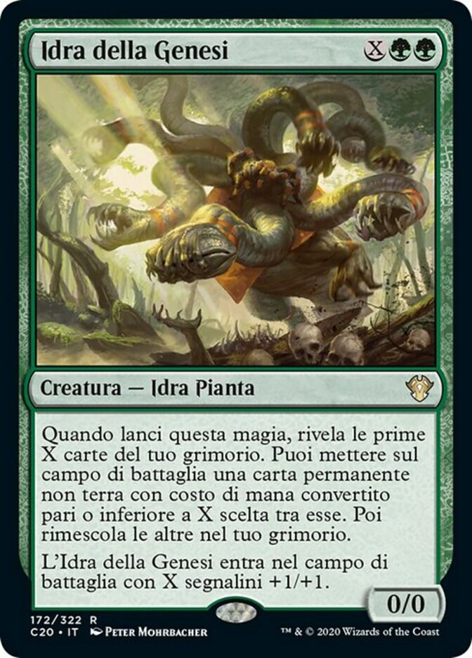| Rules | When you cast this spell, reveal the top X cards of your library. You may put a nonland permanent card with mana value X or less from among them onto the battlefield. Then shuffle the rest into your library. Genesis Hydra enters the battlefield with X +1/+1 counters on it. |