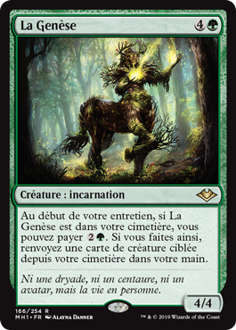 | Rules | At the beginning of your upkeep, if Genesis is in your graveyard, you may pay . If you do, return target creature card from your graveyard to your hand. |