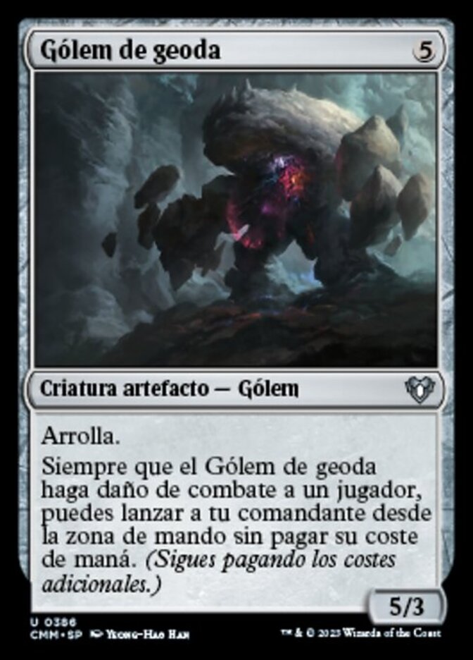 | Rules | Trample Whenever Geode Golem deals combat damage to a player, you may cast your commander from the command zone without paying its mana cost. (You still pay any additional costs.) |