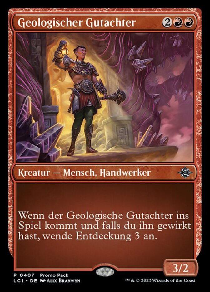 | Rules | When Geological Appraiser enters the battlefield, if you cast it, discover 3. (Exile cards from the top of your library until you exile a nonland card with mana value 3 or less. Cast it without paying its mana cost or put it into your hand. Put the rest on the bottom in a random order.) |