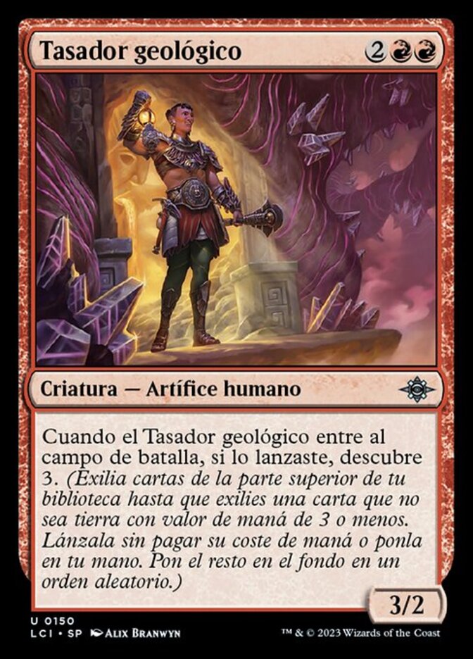 | Rules | When Geological Appraiser enters the battlefield, if you cast it, discover 3. (Exile cards from the top of your library until you exile a nonland card with mana value 3 or less. Cast it without paying its mana cost or put it into your hand. Put the rest on the bottom in a random order.) |