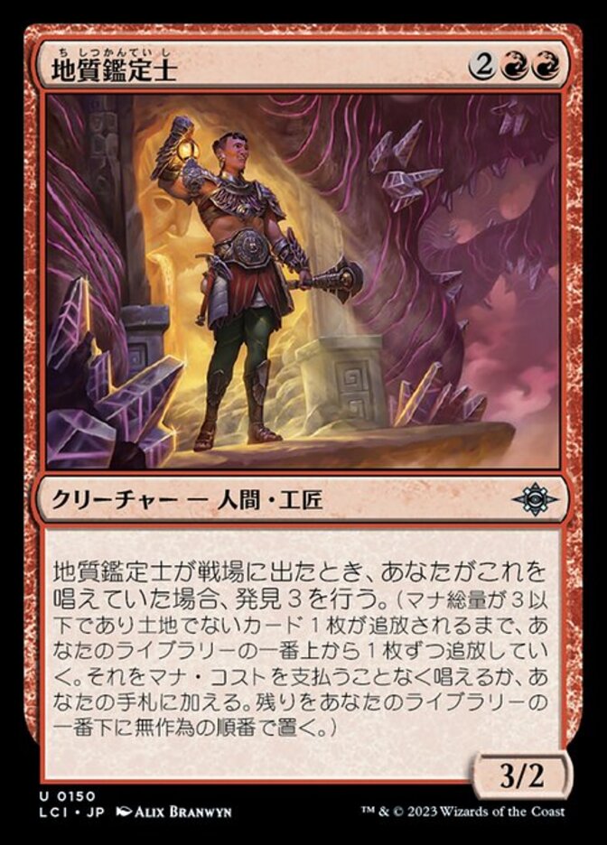 | Rules | When Geological Appraiser enters the battlefield, if you cast it, discover 3. (Exile cards from the top of your library until you exile a nonland card with mana value 3 or less. Cast it without paying its mana cost or put it into your hand. Put the rest on the bottom in a random order.) |