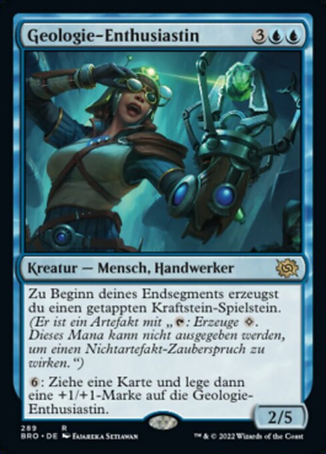 | Rules | At the beginning of your end step, create a tapped Powerstone token. (It's an artifact with ": Add . This mana can't be spent to cast a nonartifact spell.") : Draw a card and put a +1/+1 counter on Geology Enthusiast. |