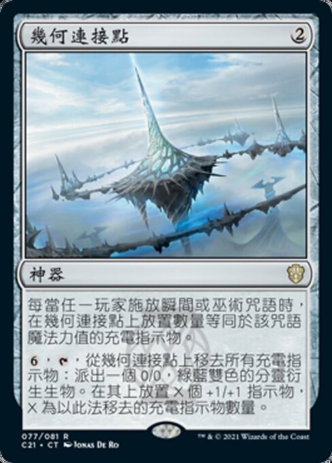 | Rules | Whenever a player casts an instant or sorcery spell, put a number of charge counters on Geometric Nexus equal to that spell's mana value. , , Remove all charge counters from Geometric Nexus: Create a 0/0 green and blue Fractal creature token. Put X +1/+1 counters on it, where X is the number of charge counters removed this way. |
