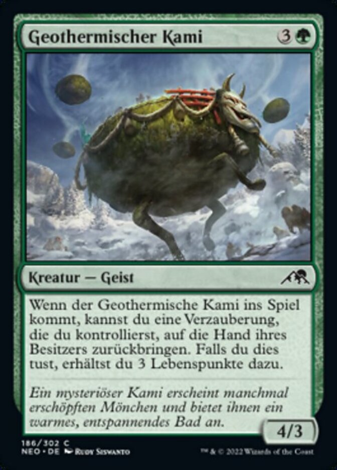 | Rules | When Geothermal Kami enters the battlefield, you may return an enchantment you control to its owner's hand. If you do, you gain 3 life. |