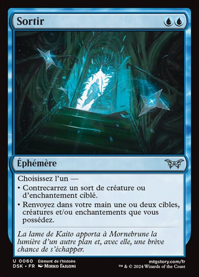 | Flavor | Kaito's blade brought the light of another plane into Duskmourn, and with it, a brief chance to escape. |