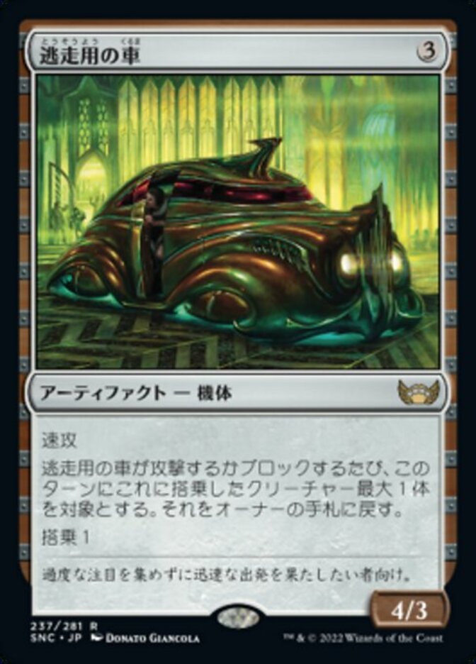 | Rules | Haste Whenever Getaway Car attacks or blocks, return up to one target creature that crewed it this turn to its owner's hand. Crew 1 |