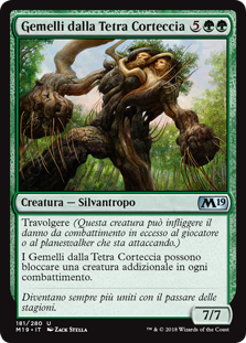 | Rules | Trample (This creature can deal excess combat damage to the player or planeswalker it's attacking.) Ghastbark Twins can block an additional creature each combat. |