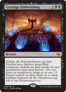 | Rules | Exile all creature cards from target player's graveyard in a face-down pile, shuffle that pile, then manifest those cards. (To manifest a card, put it onto the battlefield face down as a 2/2 creature. Turn it face up any time for its mana cost if it's a creature card.) |