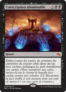 | Rules | Exile all creature cards from target player's graveyard in a face-down pile, shuffle that pile, then manifest those cards. (To manifest a card, put it onto the battlefield face down as a 2/2 creature. Turn it face up any time for its mana cost if it's a creature card.) |