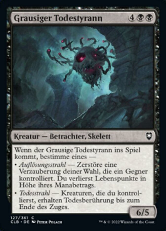| Rules | When Ghastly Death Tyrant enters the battlefield, choose one — • Disintegration Ray — Destroy target enchantment an opponent controls. You lose life equal to its mana value. • Death Ray — Creatures you control gain deathtouch until end of turn. |
