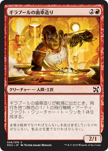 | Rules | When Ghirapur Gearcrafter enters the battlefield, create a 1/1 colorless Thopter artifact creature token with flying. (A creature with flying can't be blocked except by creatures with flying or reach.) |