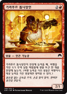 | Rules | When Ghirapur Gearcrafter enters the battlefield, create a 1/1 colorless Thopter artifact creature token with flying. (A creature with flying can't be blocked except by creatures with flying or reach.) |