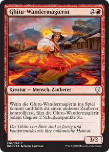 | Rules | When Ghitu Journeymage enters the battlefield, if you control another Wizard, Ghitu Journeymage deals 2 damage to each opponent. |