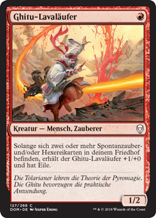| Rules | As long as there are two or more instant and/or sorcery cards in your graveyard, Ghitu Lavarunner gets +1/+0 and has haste. |