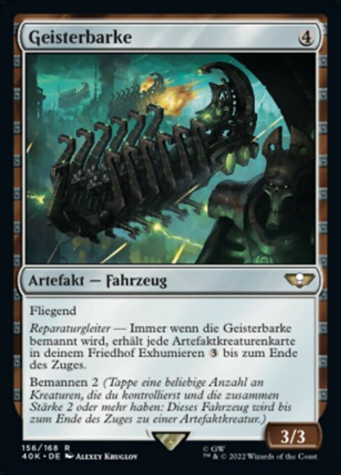 | Rules | Flying Repair Barge — Whenever Ghost Ark becomes crewed, each artifact creature card in your graveyard gains unearth until end of turn. Crew 2 (Tap any number of creatures you control with total power 2 or more: This Vehicle becomes an artifact creature until end of turn.) |