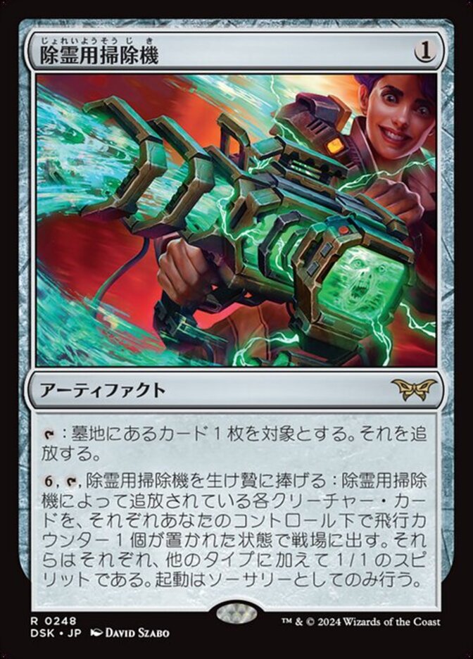 | Rules | : Exile target card from a graveyard. , , Sacrifice Ghost Vacuum: Put each creature card exiled with Ghost Vacuum onto the battlefield under your control with a flying counter on it. Each of them is a 1/1 Spirit in addition to its other types. Activate only as a sorcery. |