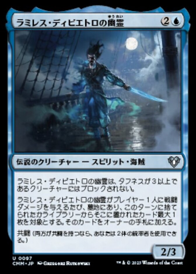 | Rules | Ghost of Ramirez DePietro can't be blocked by creatures with toughness 3 or greater. Whenever Ghost of Ramirez DePietro deals combat damage to a player, choose up to one target card in a graveyard that was discarded or put there from a library this turn. Put that card into its owner's hand. Partner (You can have two commanders if both have partner.) |