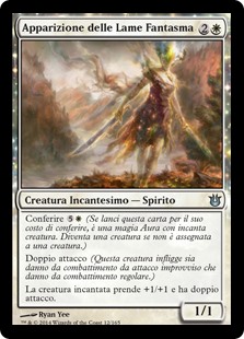 | Rules | Bestow (If you cast this card for its bestow cost, it's an Aura spell with enchant creature. It becomes a creature again if it's not attached to a creature.) Double strike (This creature deals both first-strike and regular combat damage.) Enchanted creature gets +1/+1 and has double strike. |