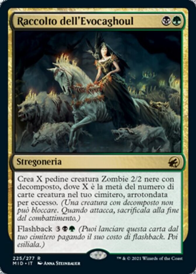 | Rules | Create X 2/2 black Zombie creature tokens with decayed, where X is half the number of creature cards in your graveyard, rounded up. (A creature with decayed can't block. When it attacks, sacrifice it at end of combat.) Flashback (You may cast this card from your graveyard for its flashback cost. Then exile it.) |