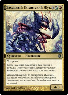 | Rules | Haste When Giant Ambush Beetle enters the battlefield, you may have target creature block it this turn if able. |