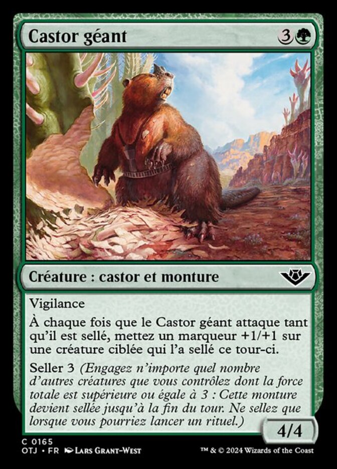 | Rules | Vigilance Whenever Giant Beaver attacks while saddled, put a +1/+1 counter on target creature that saddled it this turn. Saddle 3 (Tap any number of other creatures you control with total power 3 or more: This Mount becomes saddled until end of turn. Saddle only as a sorcery.) |