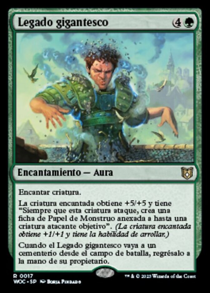 | Rules | Enchant creature Enchanted creature gets +5/+5 and has "Whenever this creature attacks, create a Monster Role token attached to up to one target attacking creature." (Enchanted creature gets +1/+1 and has trample.) When Giant Inheritance is put into a graveyard from the battlefield, return it to its owner's hand. |