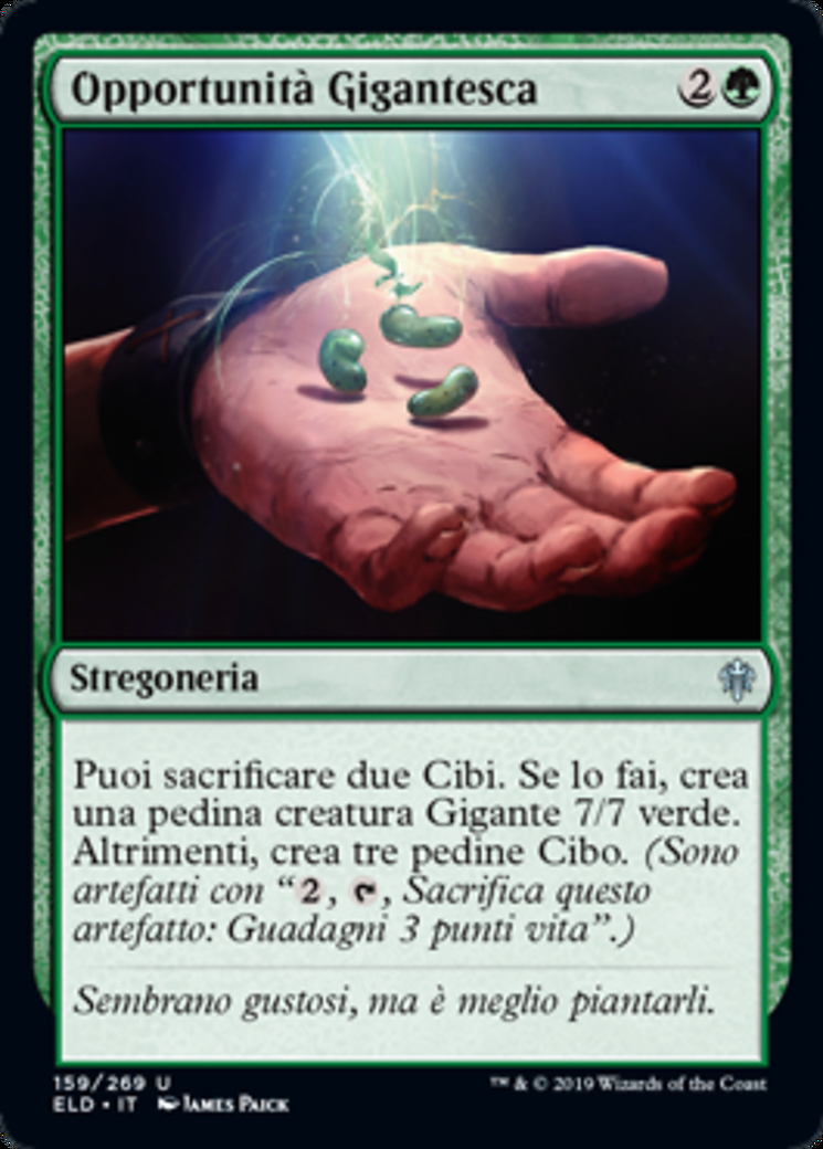 | Rules | You may sacrifice two Foods. If you do, create a 7/7 green Giant creature token. Otherwise, create three Food tokens. (They're artifacts with ", , Sacrifice this artifact: You gain 3 life.") |