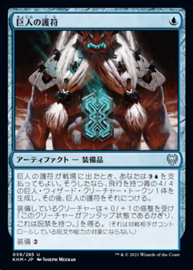 | Rules | When Giant's Amulet enters the battlefield, you may pay . If you do, create a 4/4 blue Giant Wizard creature token, then attach Giant's Amulet to it. Equipped creature gets +0/+1 and has "This creature has hexproof as long as it's untapped." (It can't be the target of spells or abilities your opponents control.) Equip |