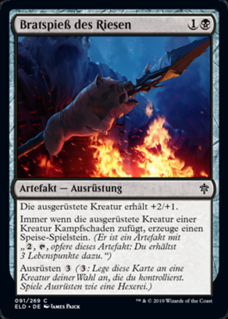 | Rules | Equipped creature gets +2/+1. Whenever equipped creature deals combat damage to a creature, create a Food token. (It's an artifact with ", , Sacrifice this artifact: You gain 3 life.") Equip (: Attach to target creature you control. Equip only as a sorcery.) |
