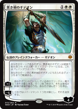 | Rules | As long as it's your turn, Gideon Blackblade is a 4/4 Human Soldier creature with indestructible that's still a planeswalker. Prevent all damage that would be dealt to Gideon Blackblade during your turn. +1: Up to one other target creature you control gains your choice of vigilance, lifelink, or indestructible until end of turn. −6: Exile target nonland permanent. |