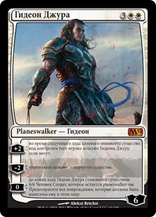 | Rules | +2: During target opponent's next turn, creatures that player controls attack Gideon Jura if able. −2: Destroy target tapped creature. 0: Until end of turn, Gideon Jura becomes a 6/6 Human Soldier creature that's still a planeswalker. Prevent all damage that would be dealt to him this turn. |