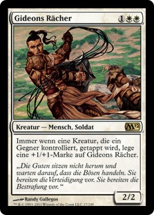 | Rules | Whenever a creature an opponent controls becomes tapped, put a +1/+1 counter on Gideon's Avenger. |