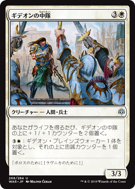 | Rules | Whenever you gain life, put two +1/+1 counters on Gideon's Company. : Put a loyalty counter on target Gideon planeswalker. |