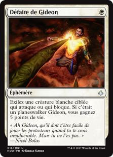 | Rules | Exile target white creature that's attacking or blocking. If it was a Gideon planeswalker, you gain 5 life. |