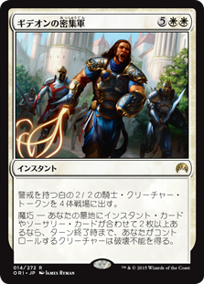 | Rules | Create four 2/2 white Knight creature tokens with vigilance. Spell mastery — If there are two or more instant and/or sorcery cards in your graveyard, creatures you control gain indestructible until end of turn. |