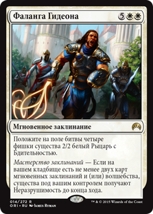| Rules | Create four 2/2 white Knight creature tokens with vigilance. Spell mastery — If there are two or more instant and/or sorcery cards in your graveyard, creatures you control gain indestructible until end of turn. |