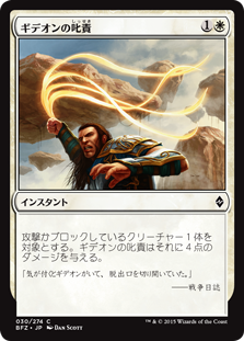 | Rules | Gideon's Reproach deals 4 damage to target attacking or blocking creature. |