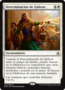 | Rules | When Gideon's Resolve enters the battlefield, you may search your library and/or graveyard for a card named Gideon, Martial Paragon, reveal it, and put it into your hand. If you search your library this way, shuffle. Creatures you control get +1/+1. |